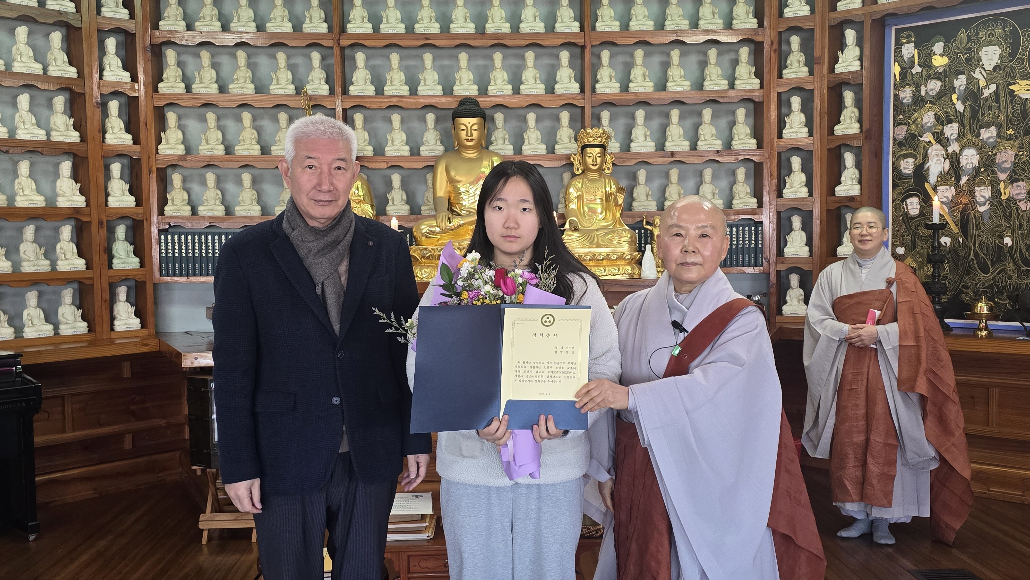 불기2570(2026)년도 2월 1일 고등학교에 입학하는 법우들에게 장학금 수여가 있었습니다.